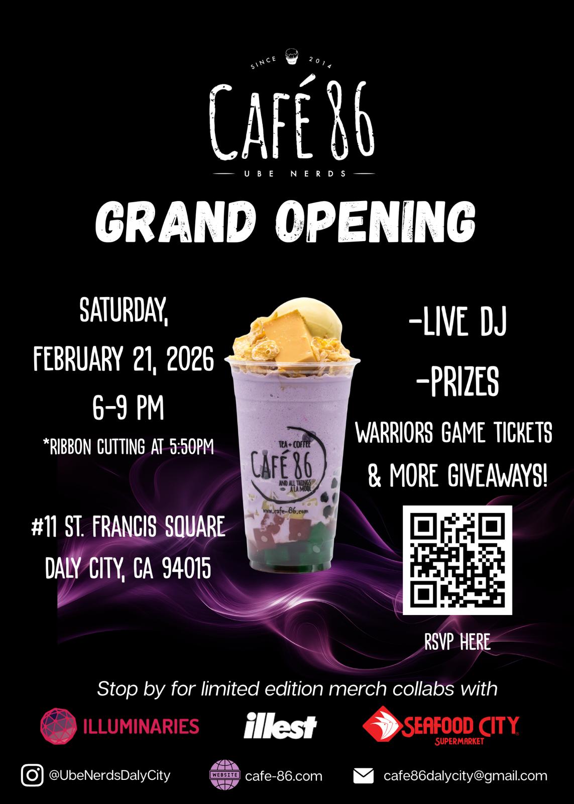 Cafe 86 Daly City, Grand Opening Ribbon Cutting 5:30pm, 6-8pm, 11 St. Francis Square, DC 94015, Learn more