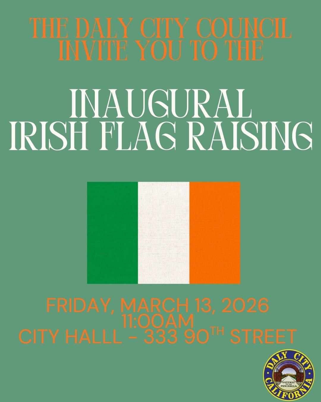 City of Daly City Inaugural Irish Flag Raising, 11am-12pm,