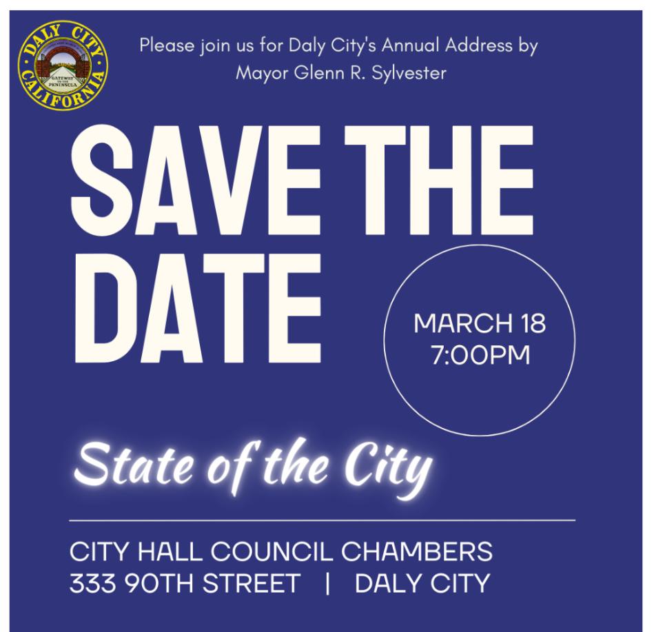 City of Daly City - State of the City Address, 7pm, 333-90th Street, Daly City, 94015 Learn more