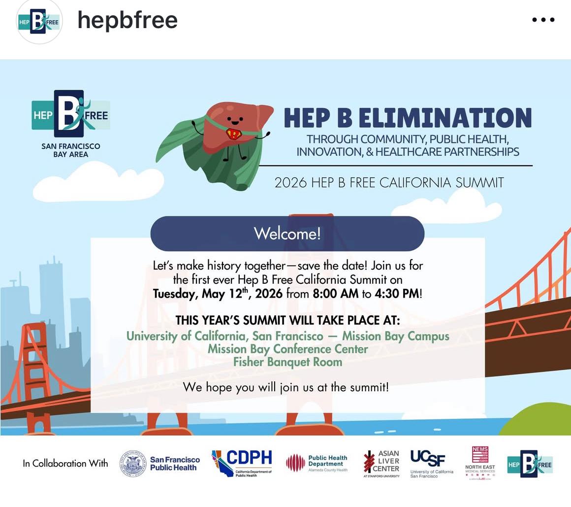 Hep B Free California Summit, 8am-4:30pm, UCSF, Mission Bay Campus, 1975 4th St, San Francisco, CA 94158 Learn more