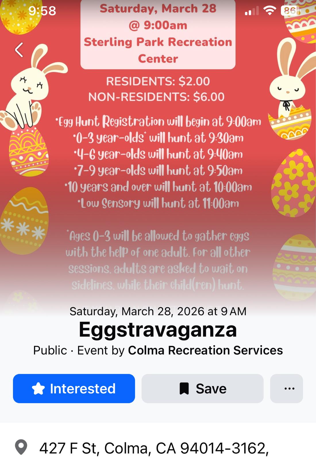 Town of Colma Recreation Services Eggstravaganza, 9am, 427 F St, Colma, Colma, CA 94014, Learn more