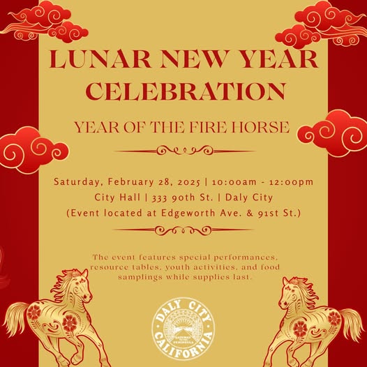City of Daly City Lunar New Year Celebration, Year of the Fire Horse, 10am-12noon, City hall, 333 90th St, DC 94015 Learn more